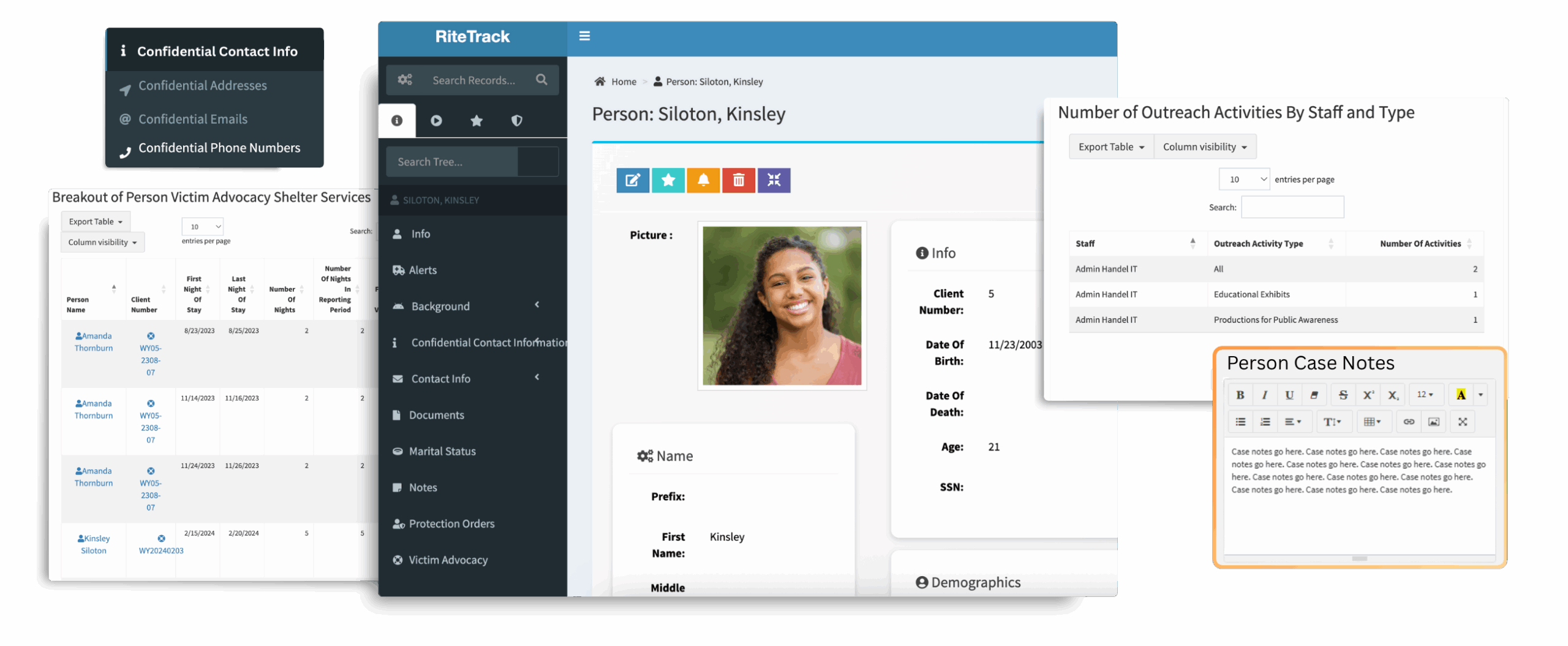 RiteTrack helps domestic violence and victim advocacy (DVVA) programs save time, improve reporting, and strengthen support services—all through one secure, easy-to-use system.